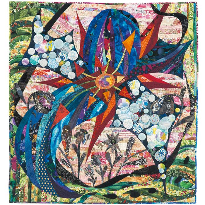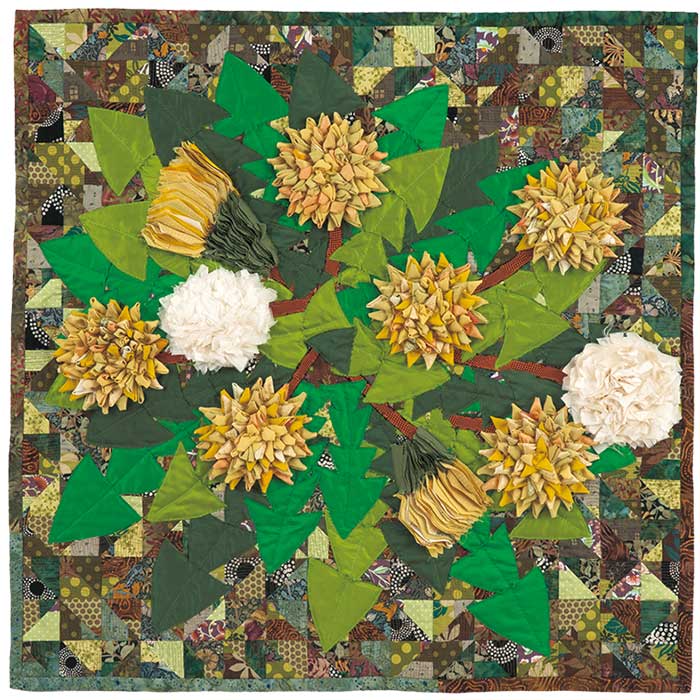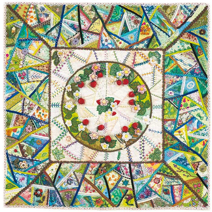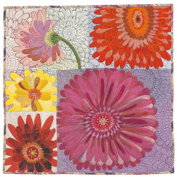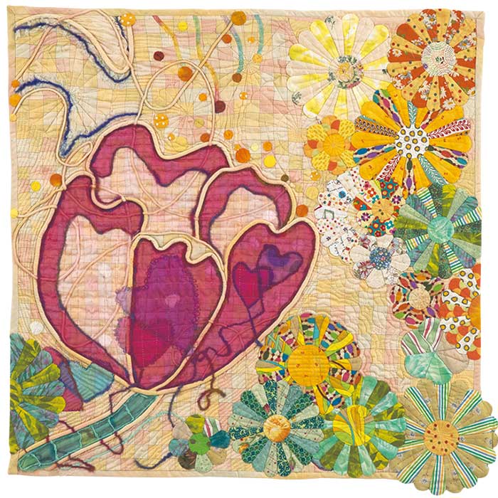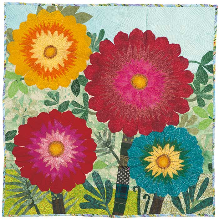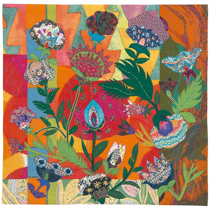 小関鈴子:この世のものではないような摩訶不思議な花が魅力的です。バックグラウンドの配色とピースワークにも目を奪われました。