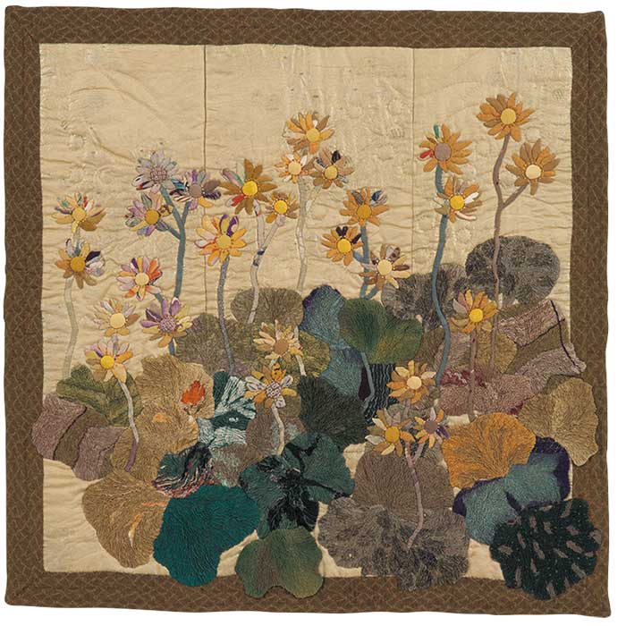 小関鈴子:古い絵画を見るようなアンティークの色調がいいですね。つわ蕗の花や葉の一つひとつが違う布で、葉に施した細かなピンタックの技術も素晴らしいです。