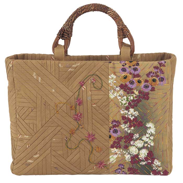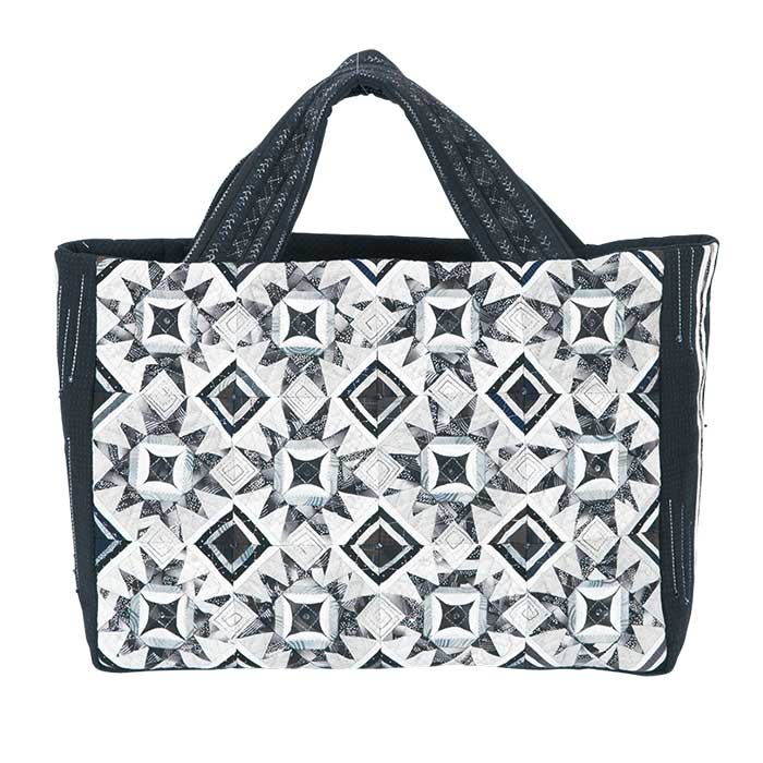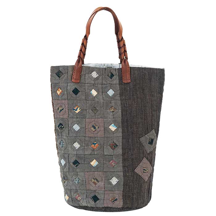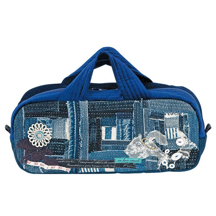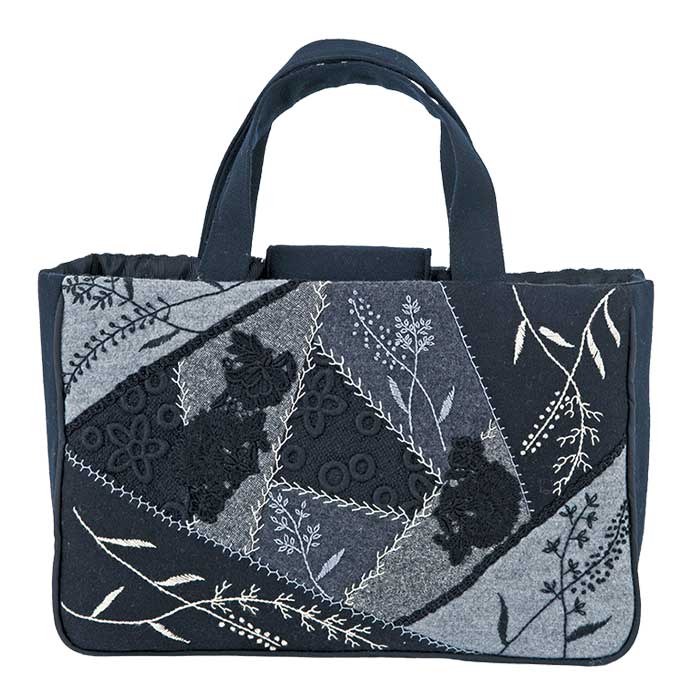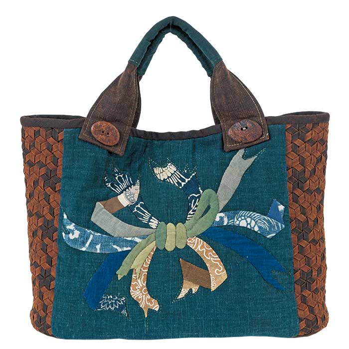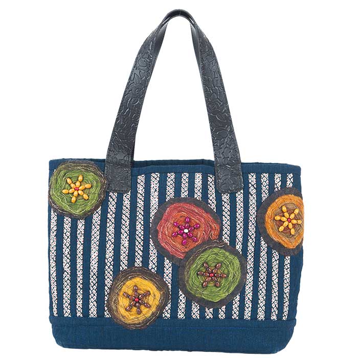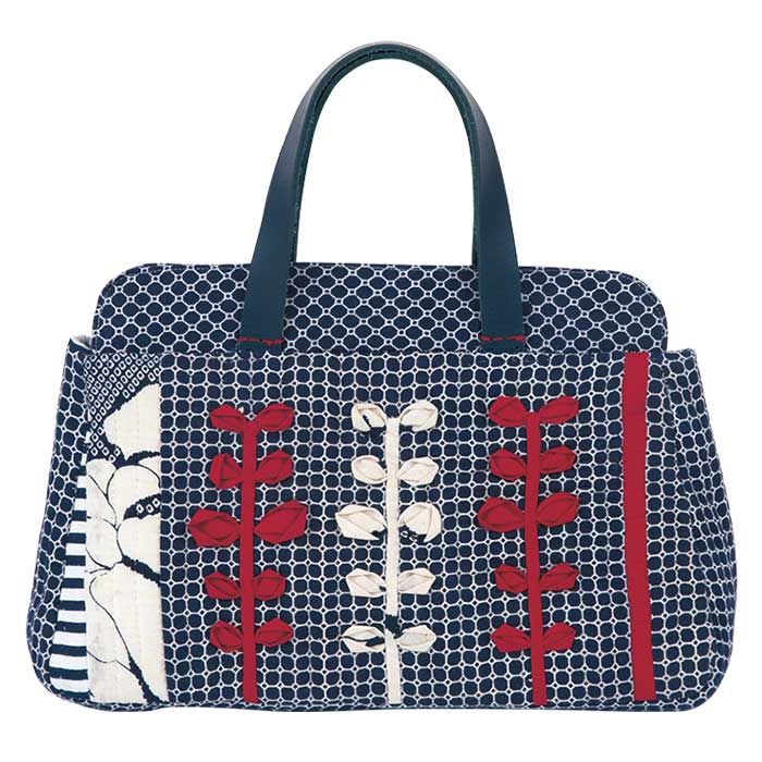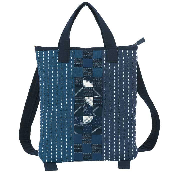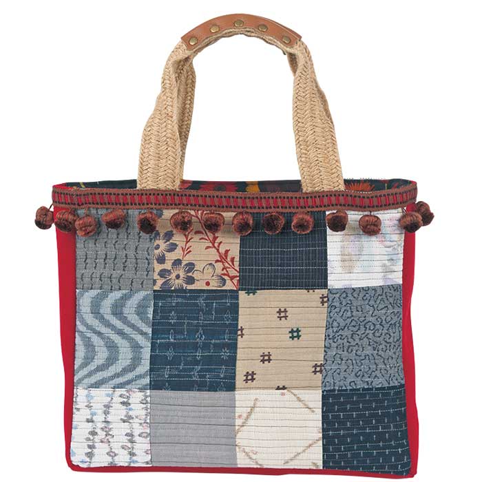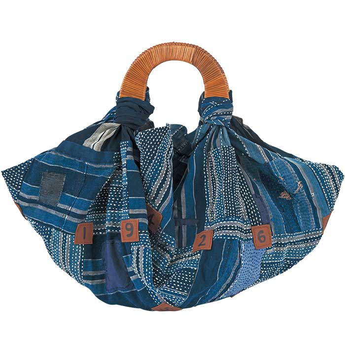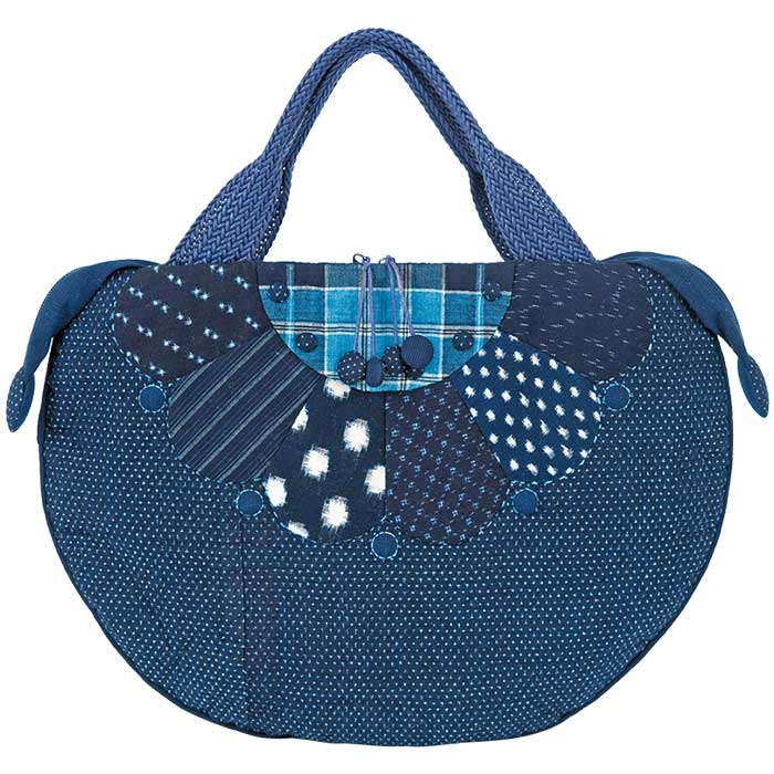 こうの早苗:落ち着いた印象の藍染めの生地に刺し子を施して、モダンでおしゃれなバッグに変身させているところに驚きました。