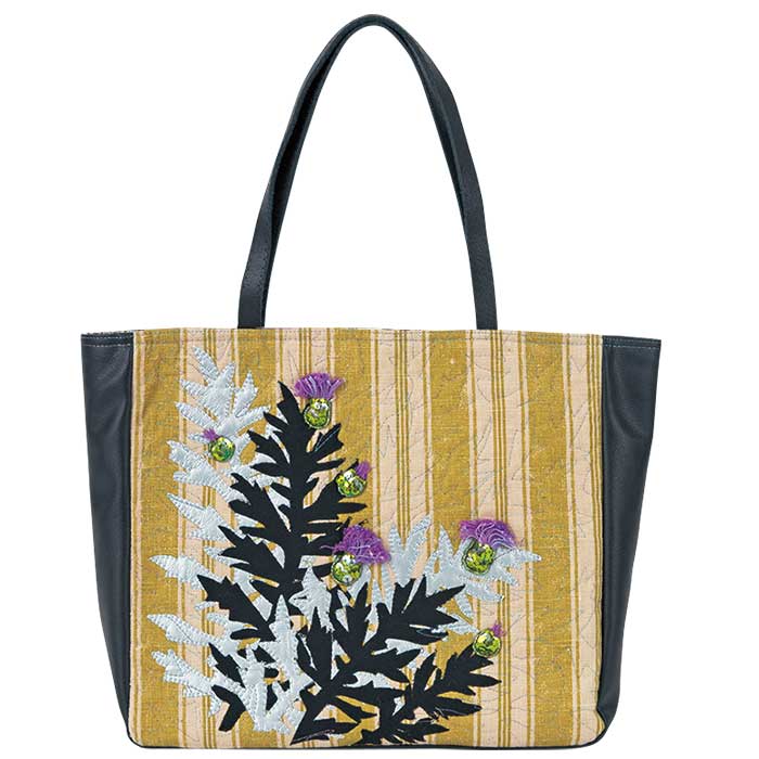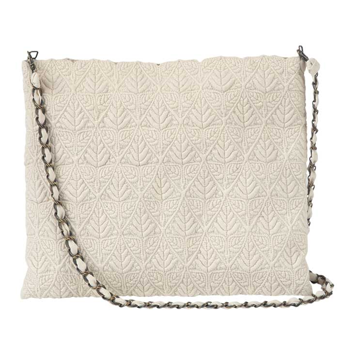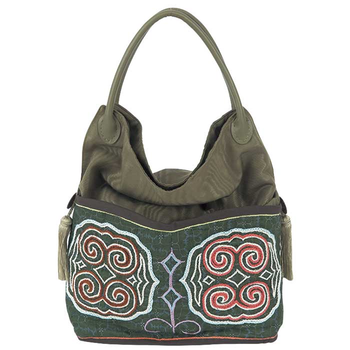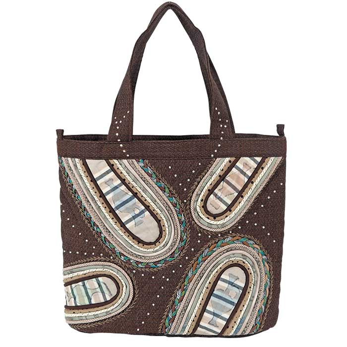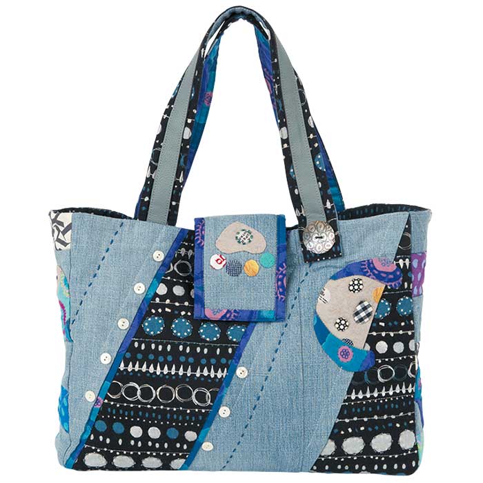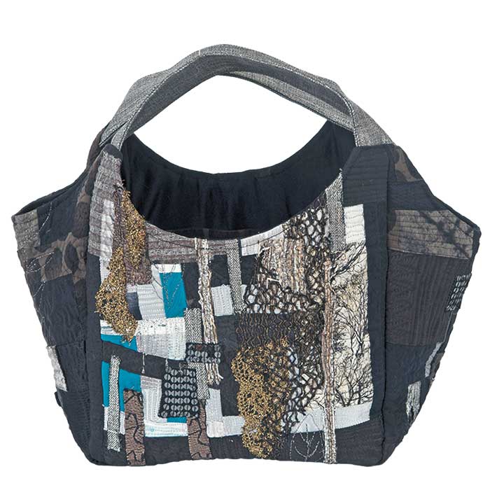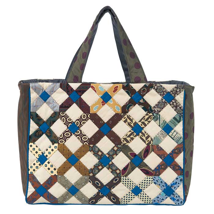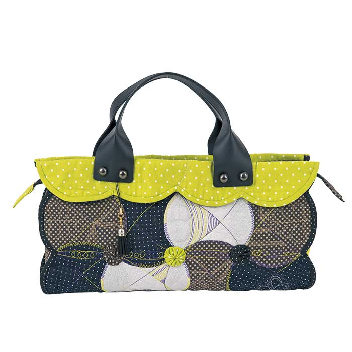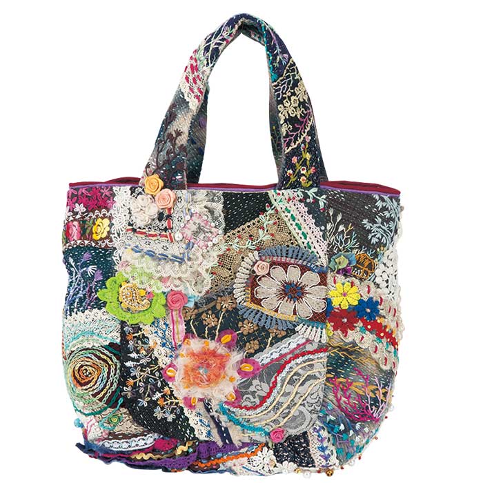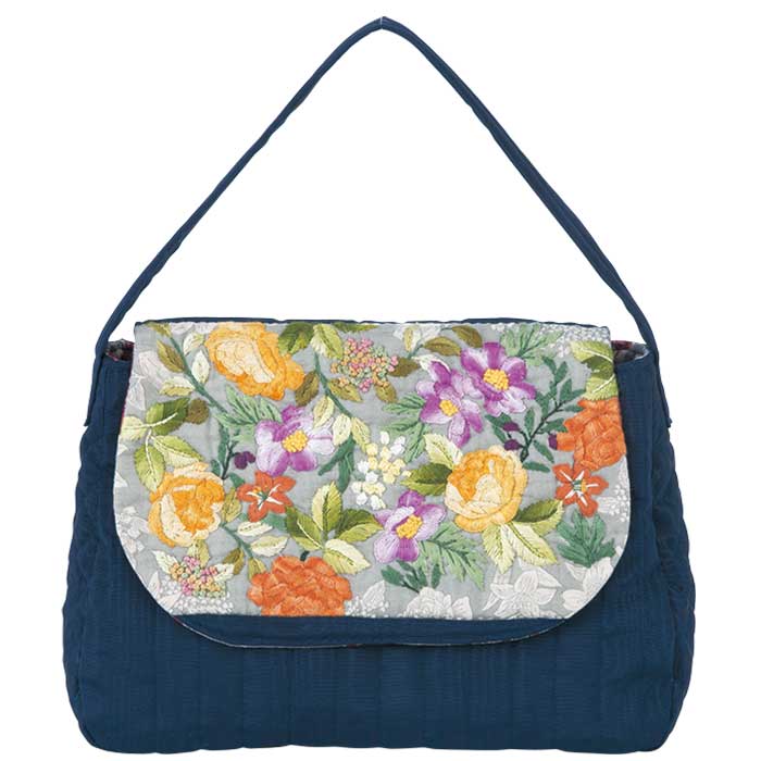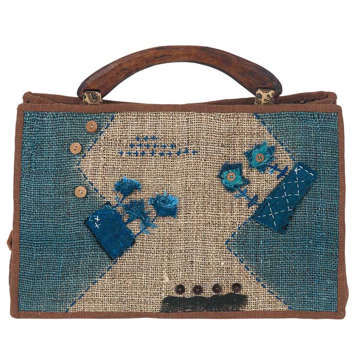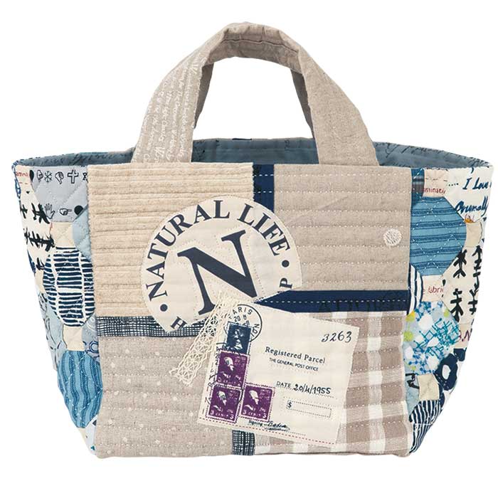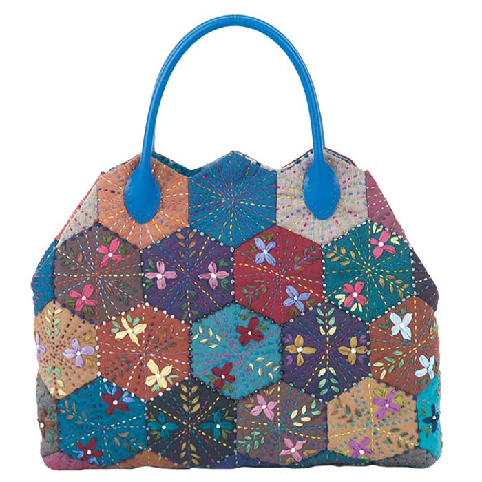 こうの早苗:落ち着いた印象の藍染めの生地に刺し子を施して、モダンでおしゃれなバッグに変身させているところに驚きました。