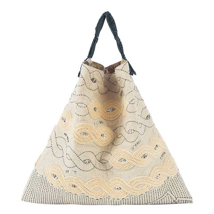 編集部:一枚の布を持ち手に結ぶことで立体的なバッグになるデザインがいいですね。いろいろな結び方を試してみたくなります。