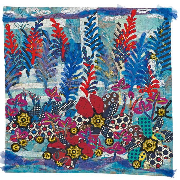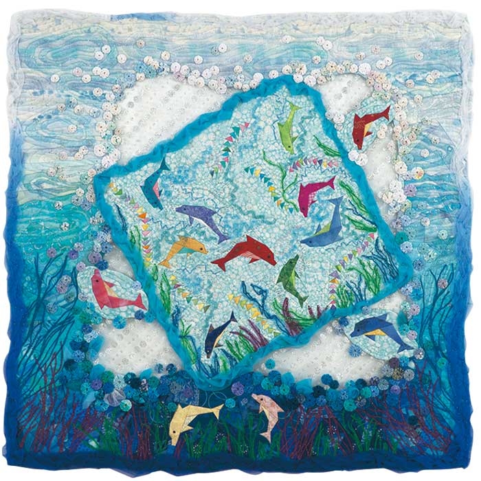 小関鈴子:大きな土台にセルティックキルトで表現した魚の配色がいいですね。ものを入れて立体感が出ると作品のよさが際立ちます。
