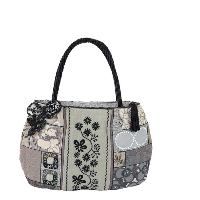 小関鈴子:アップリケの王道と言える作品です。グレイッシュな色味だけでこれだけの重厚感を出すのは難しいのですが細部まで丁寧に作られています。