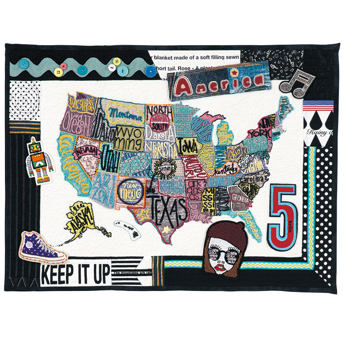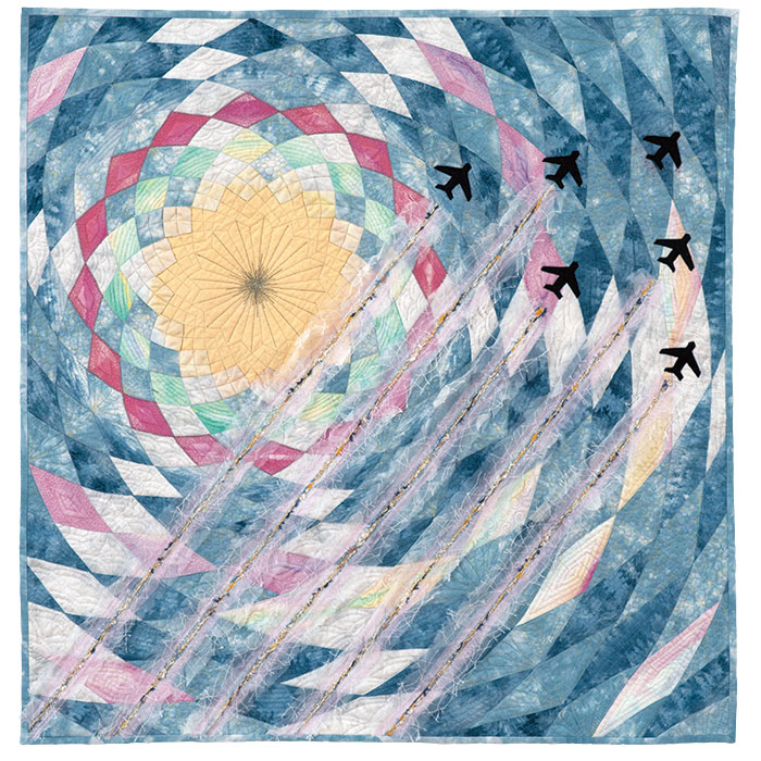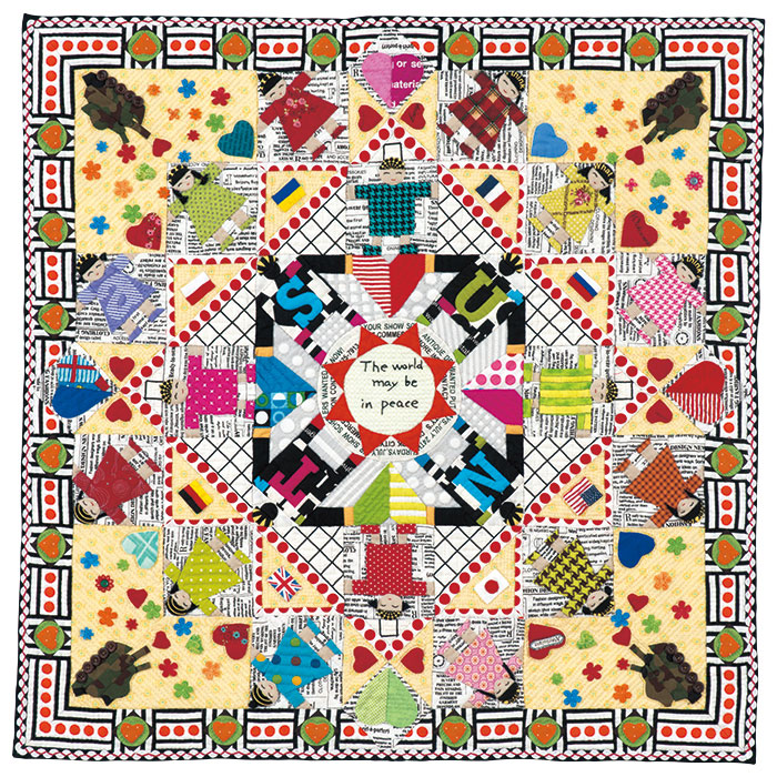 コロナ禍で、キルトの本場アメリカ旅行を夢見て元気が出る作品を作ろうと、思いを馳せワクワクしながら楽しく作りました。