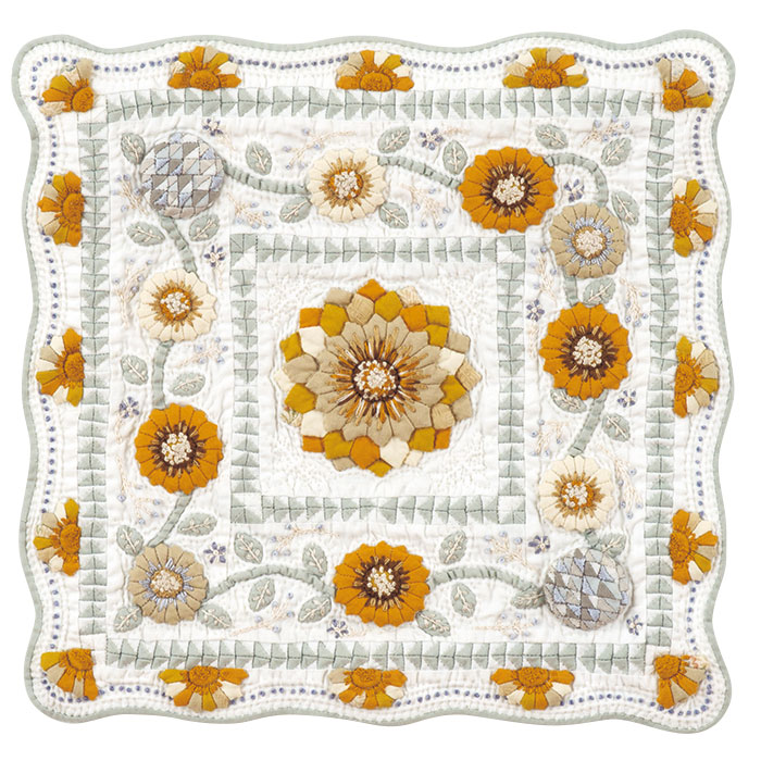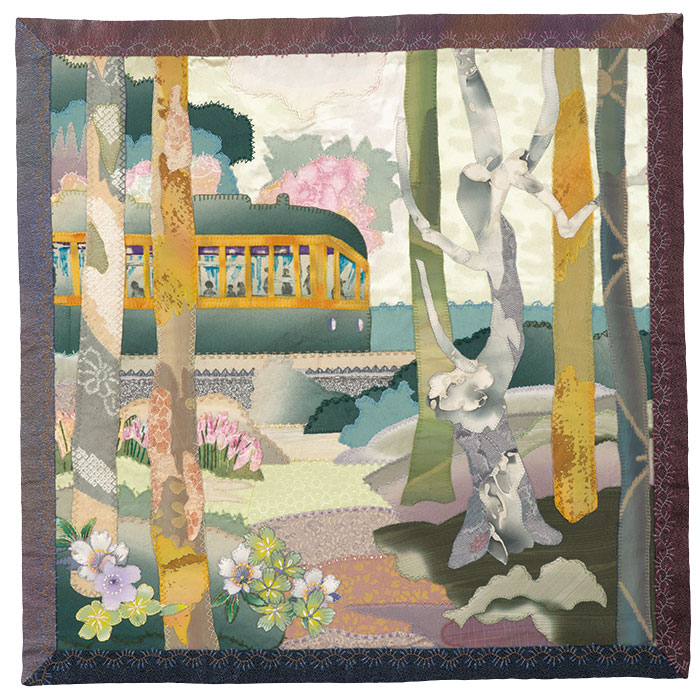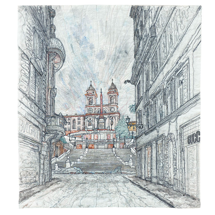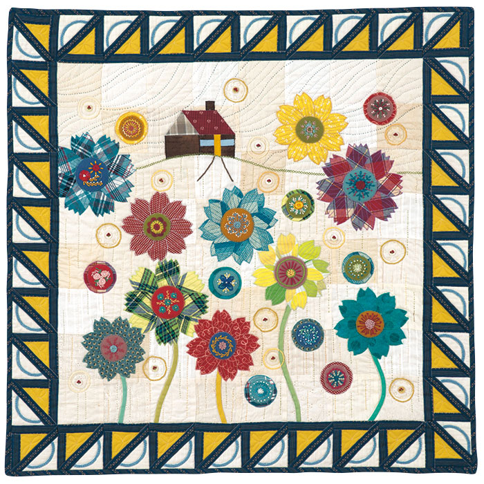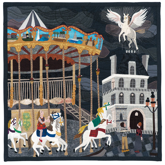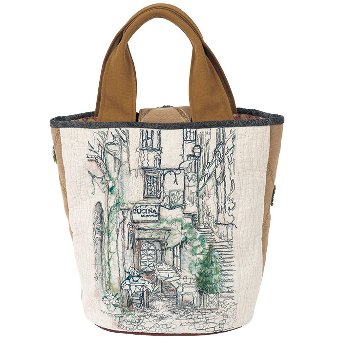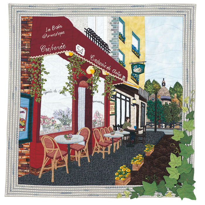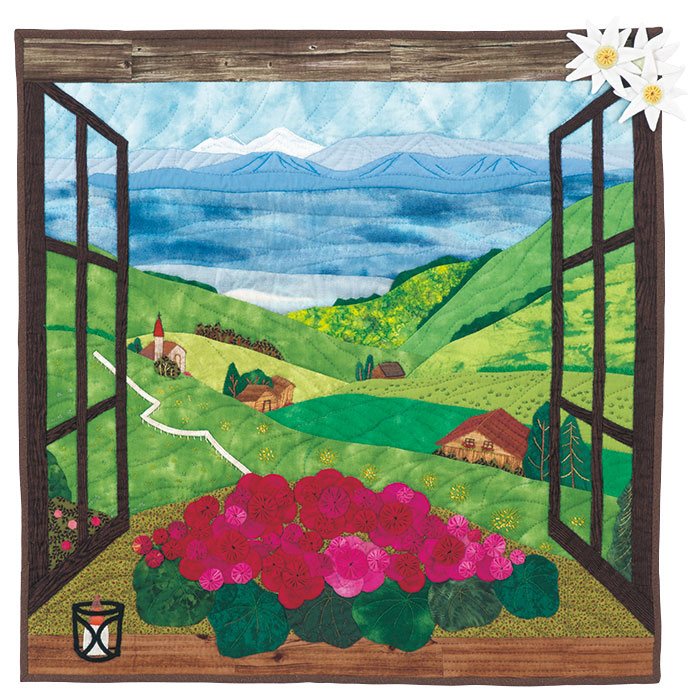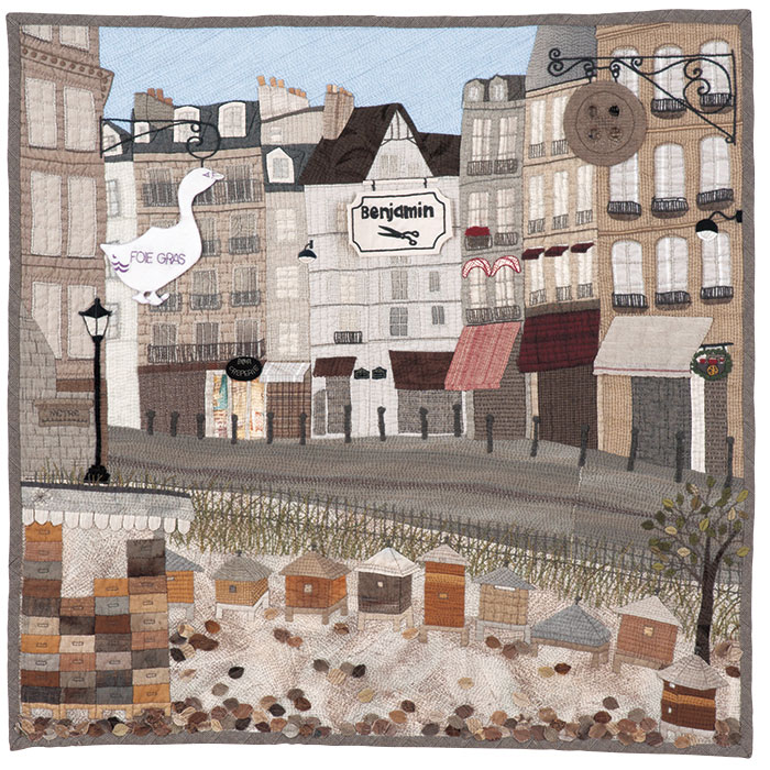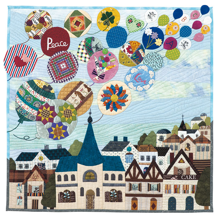 編集部:遠近感が感じられ、町の風景が布でうまく表現されています。たくさんのキルティングや繊細な刺しゅうなど、テクニックも素晴らしいです。