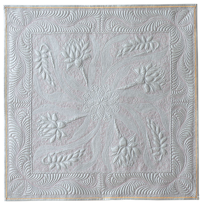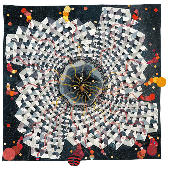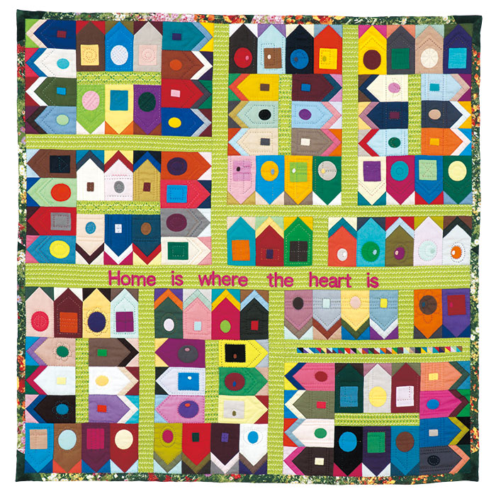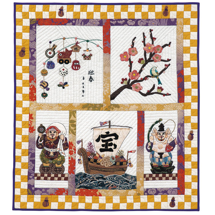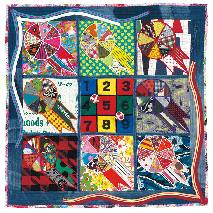 こうの早苗:キルトでおうち時間を楽しむというメッセージも感じられますね。丸・三角・四角のシンプルな形でここまで表現できるのは素晴らしいです。