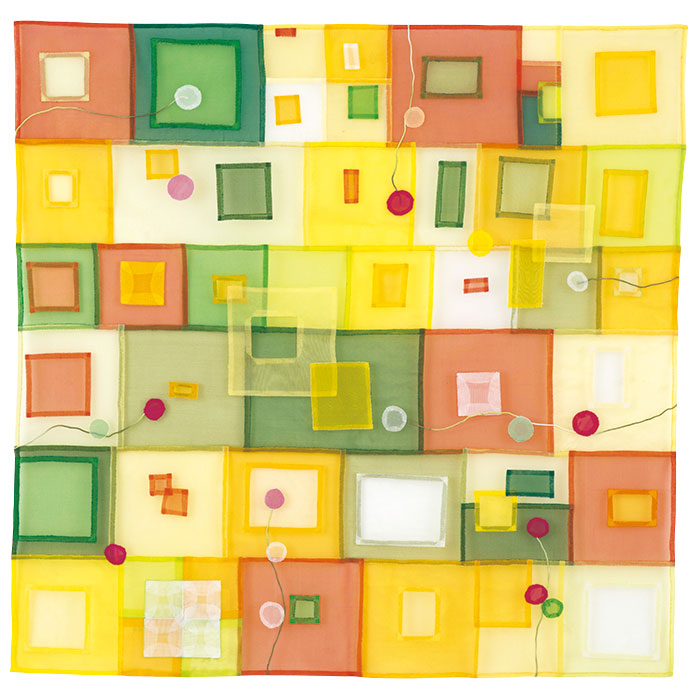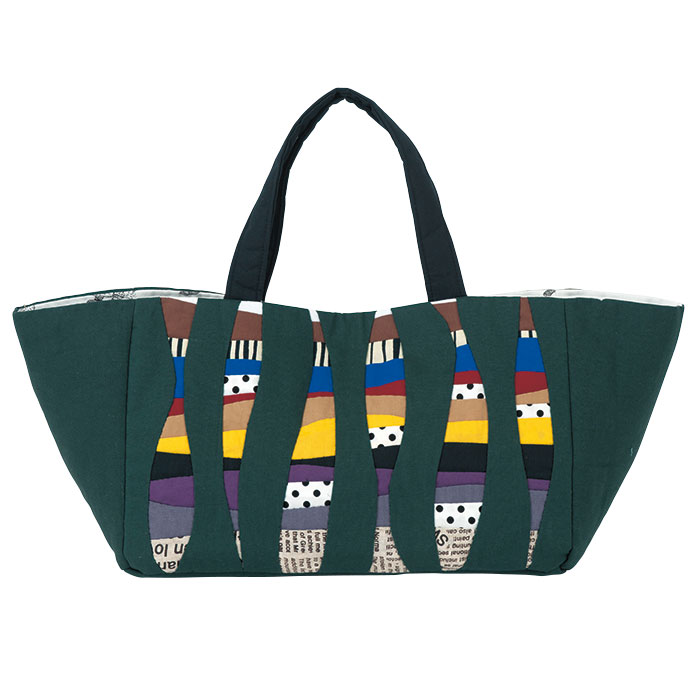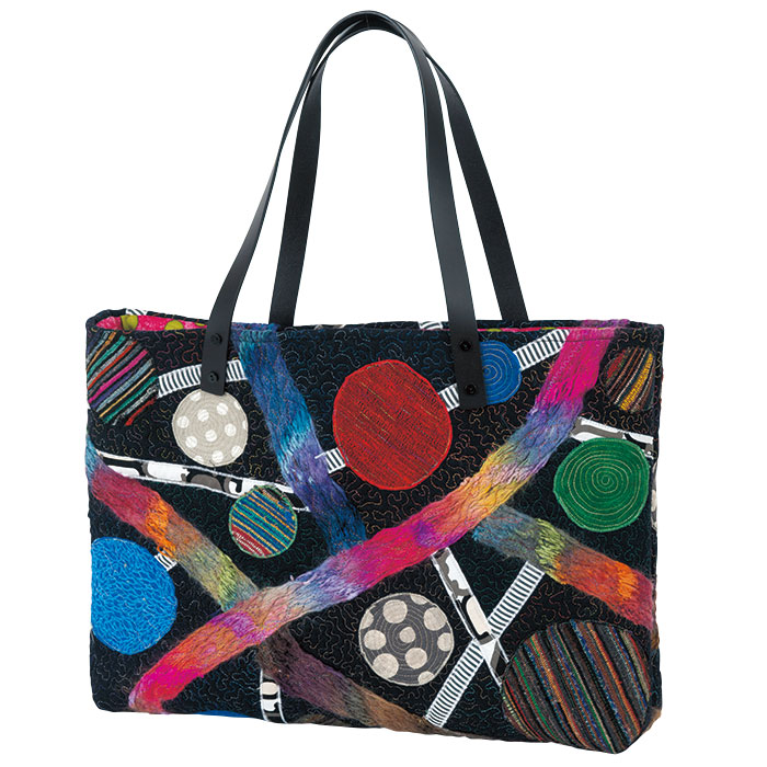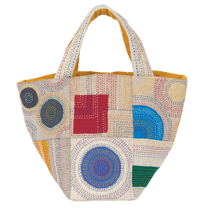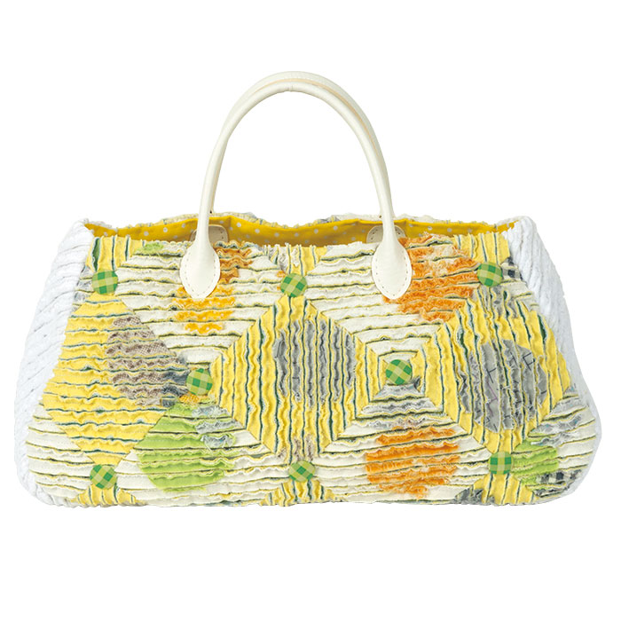 こうの早苗:丸と四角形の配置や色のバランスが良いですね。バッグの裏布や持ち手の裏を黄色にしたのも効果的です。