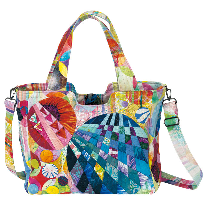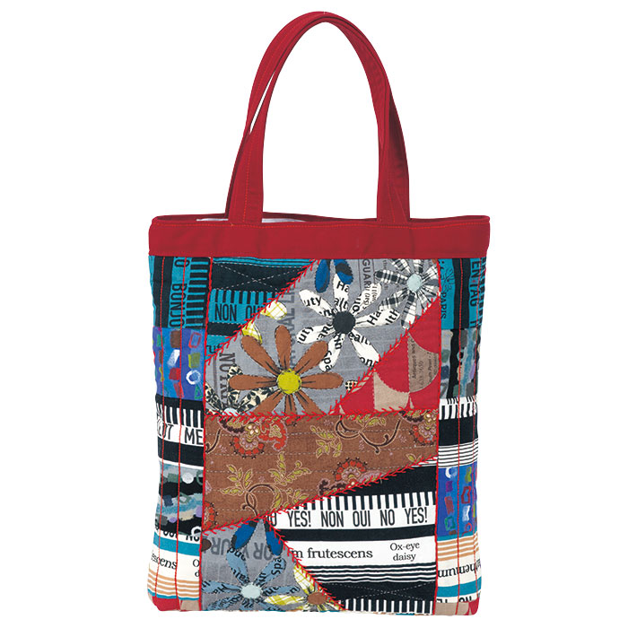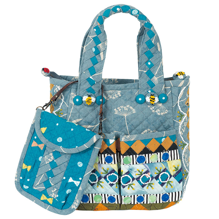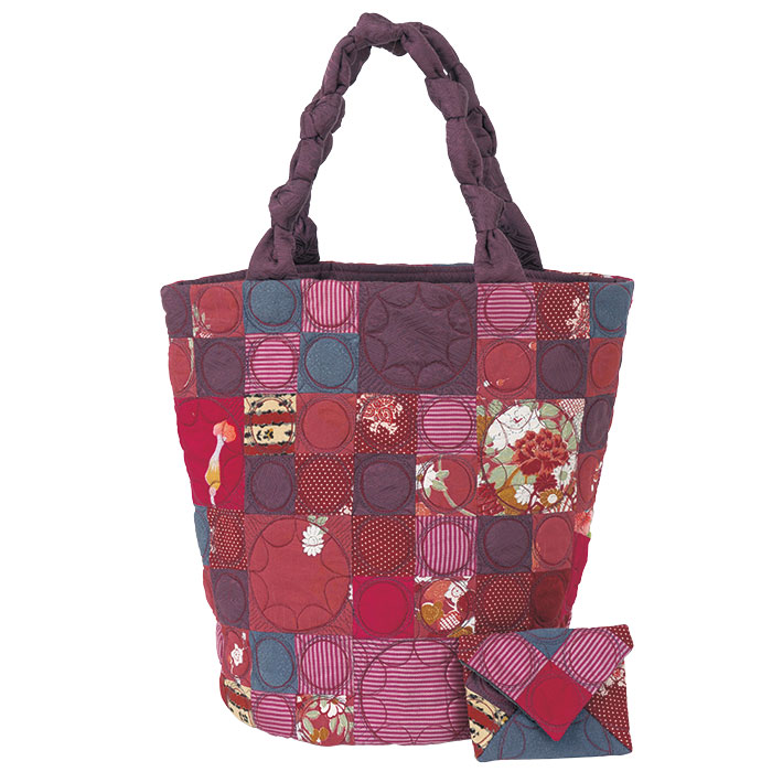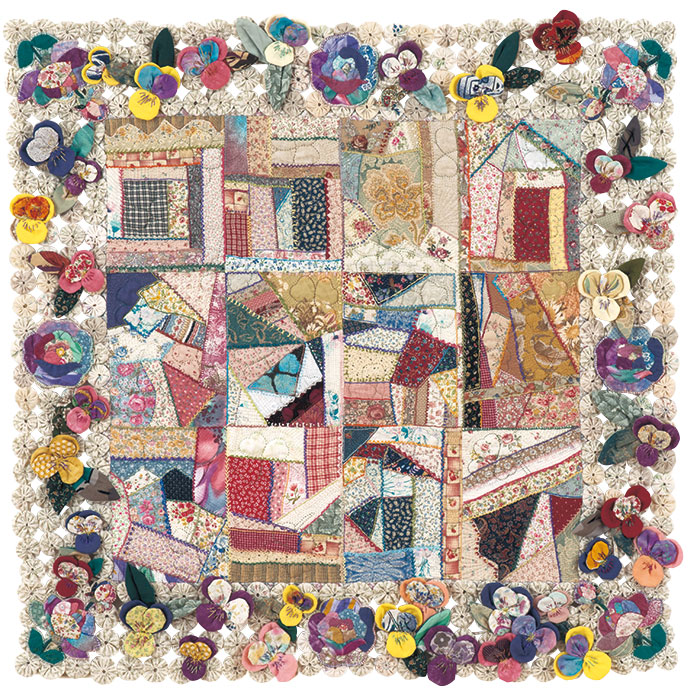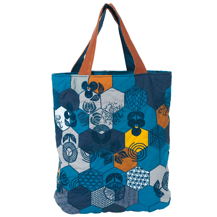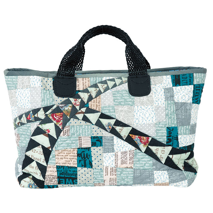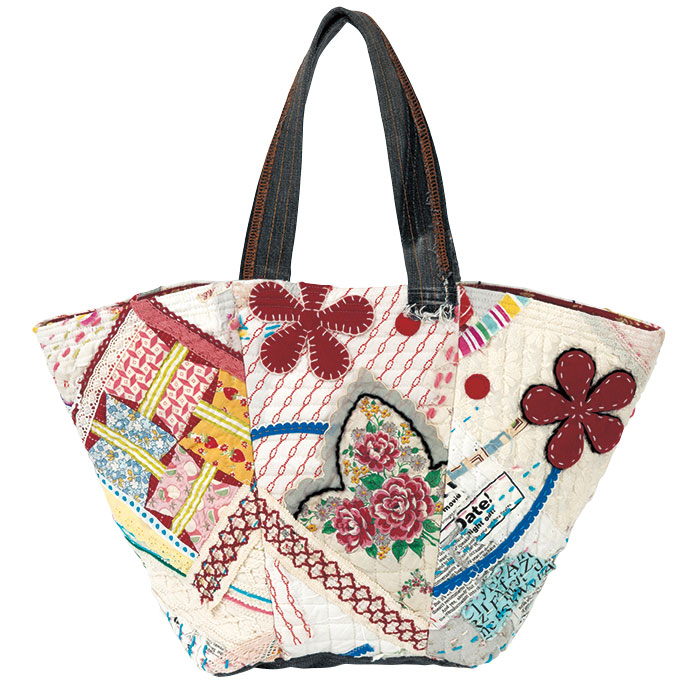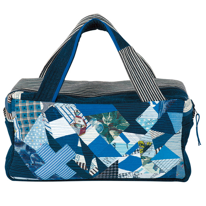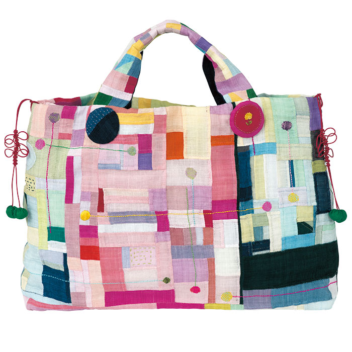 編集部:ブルー系のはぎれがバランスよくクレイジー風にピースワークされていてデニムにもぴったりです。キルティングもシンプルで素敵です。