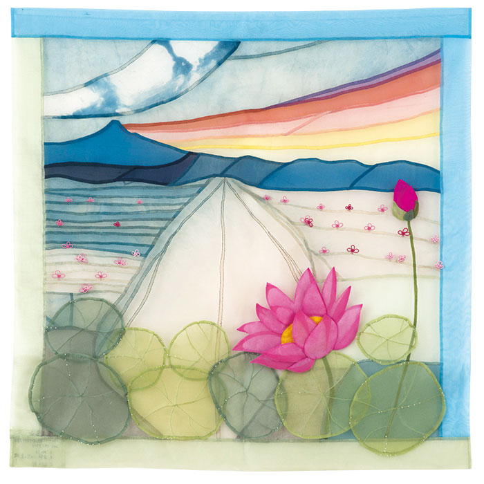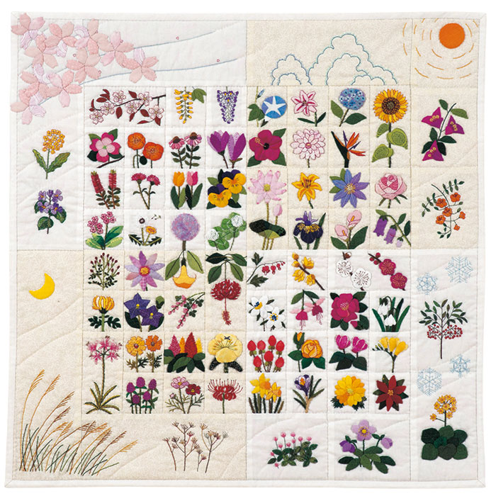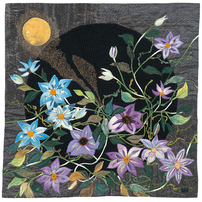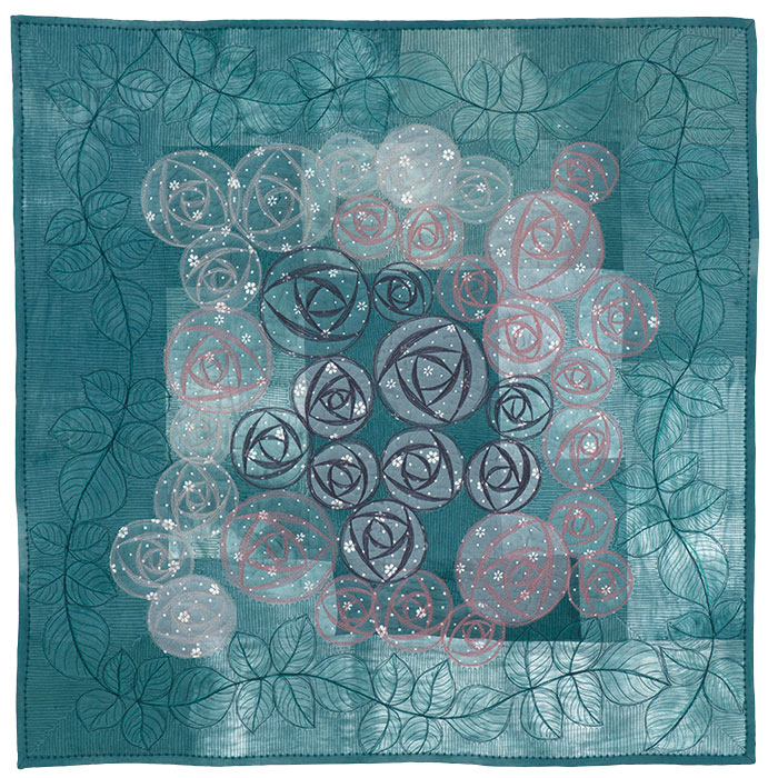 藤田久美子:刺し子風のステッチや立体感のあるコラージュがうまくまとめられています。茎に使用したベロアは向きにより光沢が出ていいですね。