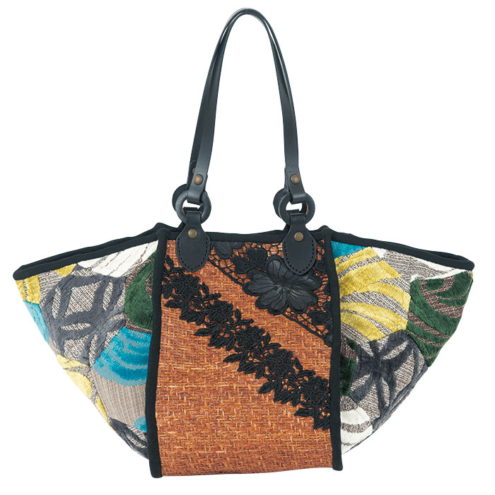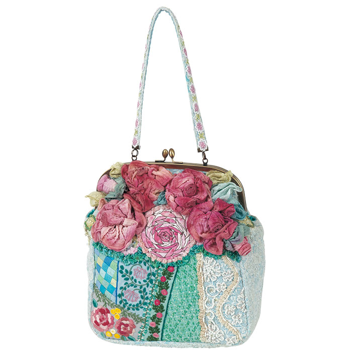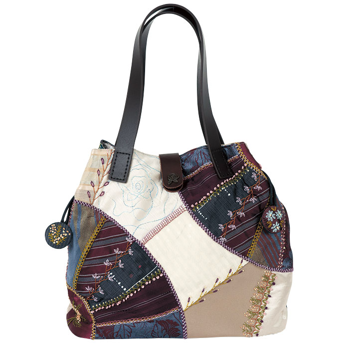 このバッグと一緒に気の向くまま、散策するのが楽しみです。アンティーク布や異素材での製作は楽しく、瞬く間に時が過ぎました。