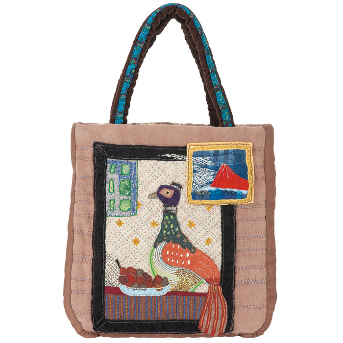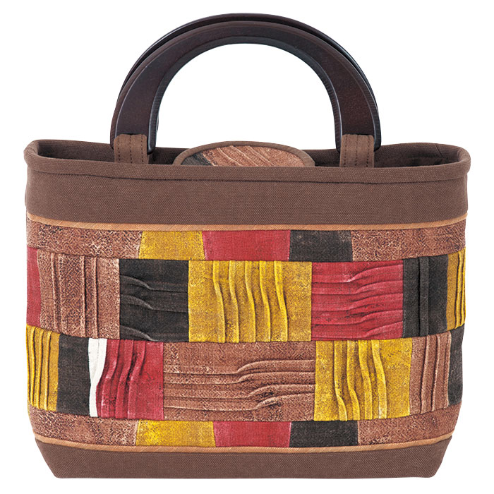 こうの早苗:上質な和のテキスタイルが使用され、色や素材感が作品にうまく生かされています。さっと持ちやすそうなデザインも魅力的です。