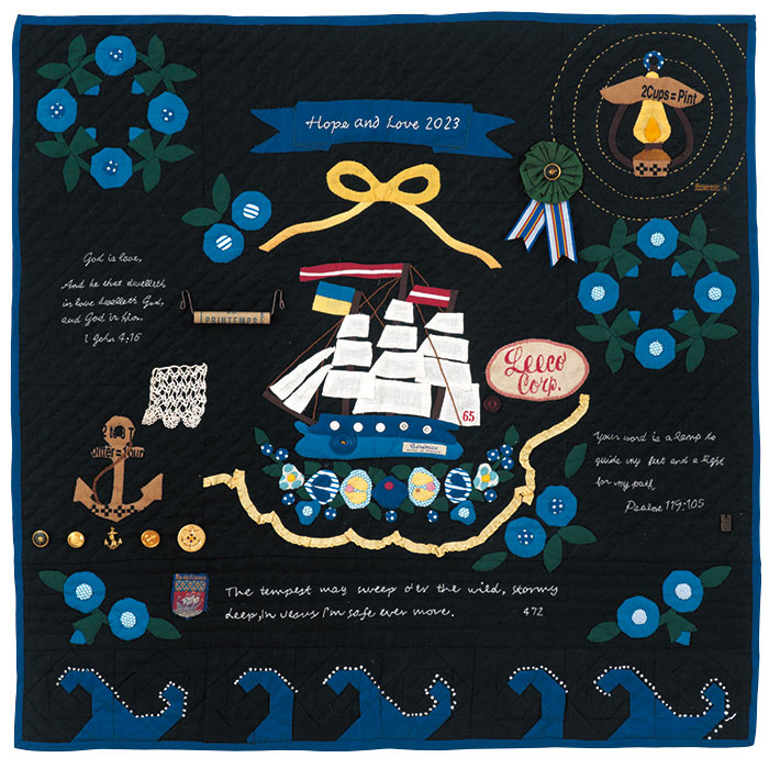 今までと違う日常を過ごす中で大事なことは自分の心の中にあると考え、その時に感じた小さな希望をキルトで表現しました。