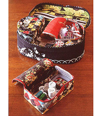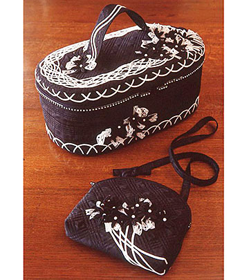 旅行の時、バニティーケースにもなる、夢のお針箱。お揃いのポシェットも制作。