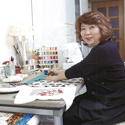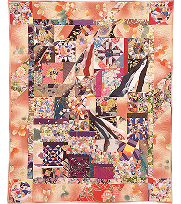 2004年「世界のキルト作家100人展」出展作品。トラディショナルパターンを、古来より日本に伝わる美しい色合いの和布でつなぎ合わせ、そしてそのパターンをランダムに配置。流れるような心地よい和のメロディーが聞こえてくるような作品。