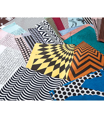 デボラ・ラーンさんの布。縞や曲線などきれいにラインを縫うにはミシンが最適と気がつき、ミシンキルトを始めるきっかけを与えてくれた。日本では販売されていないので、オハイオの彼女の工房へ行ったり、インターネットで購入したりして手に入れている。