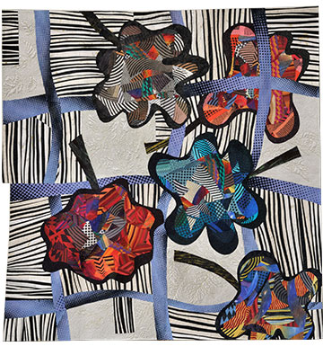 齋藤さんの作品作りに大きな影響を与えたのが、アメリカのデボラ・ラーンさんの布との出合いである。毎年行っていたヒューストンのキルトフェスティバルで初めてデボラさんの布を見て、新鮮な衝撃を受けた。