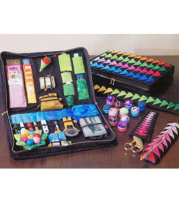 • キルト作りが楽しくなりそうな、黒地にカラフルなグラデーションを組み合わせて作った2種類のお針箱。「私の針仕事展2005」に出品したもの。