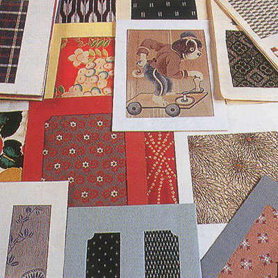 和紙に貼った残り布のスクラップ。最後の最後まで布を大切に扱う、アメリーさんの優しさが満ち溢れている。これまでに着物地をリメイクして、甦らせた作品は数え切れないほどたくさんある。