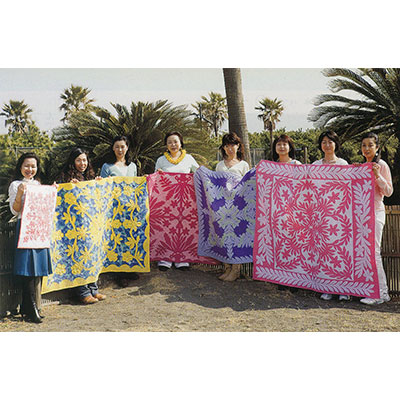 「うちの教室も、フラダンスを習う時のバッグを作りたいとか、ハワイアンバンドをやっているので、ウクレレや楽器モチーフのキルトを作りたいというような人が増えましたね」オリジナルのモチーフを8分の1で起こし、広げた時の喜びはいつも新鮮で色あせることがない。「私のキルトには、忍耐という言葉がないんです(笑)。とにかく楽しくやらなければ、楽しいキルトはできません。追われながら苦痛に思って作ったのでは、何のためのキルトか分からないですから、その人の持ち味でその人らしいものを作れば一番いいと思いますね」