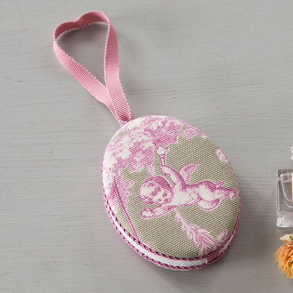 コンパクト型アロマオーナメントコンパクト型で内側にアロマオイルを垂らして使うオーナメントです。生地を“縫って”カルトンをくるむ方法を学びます。
