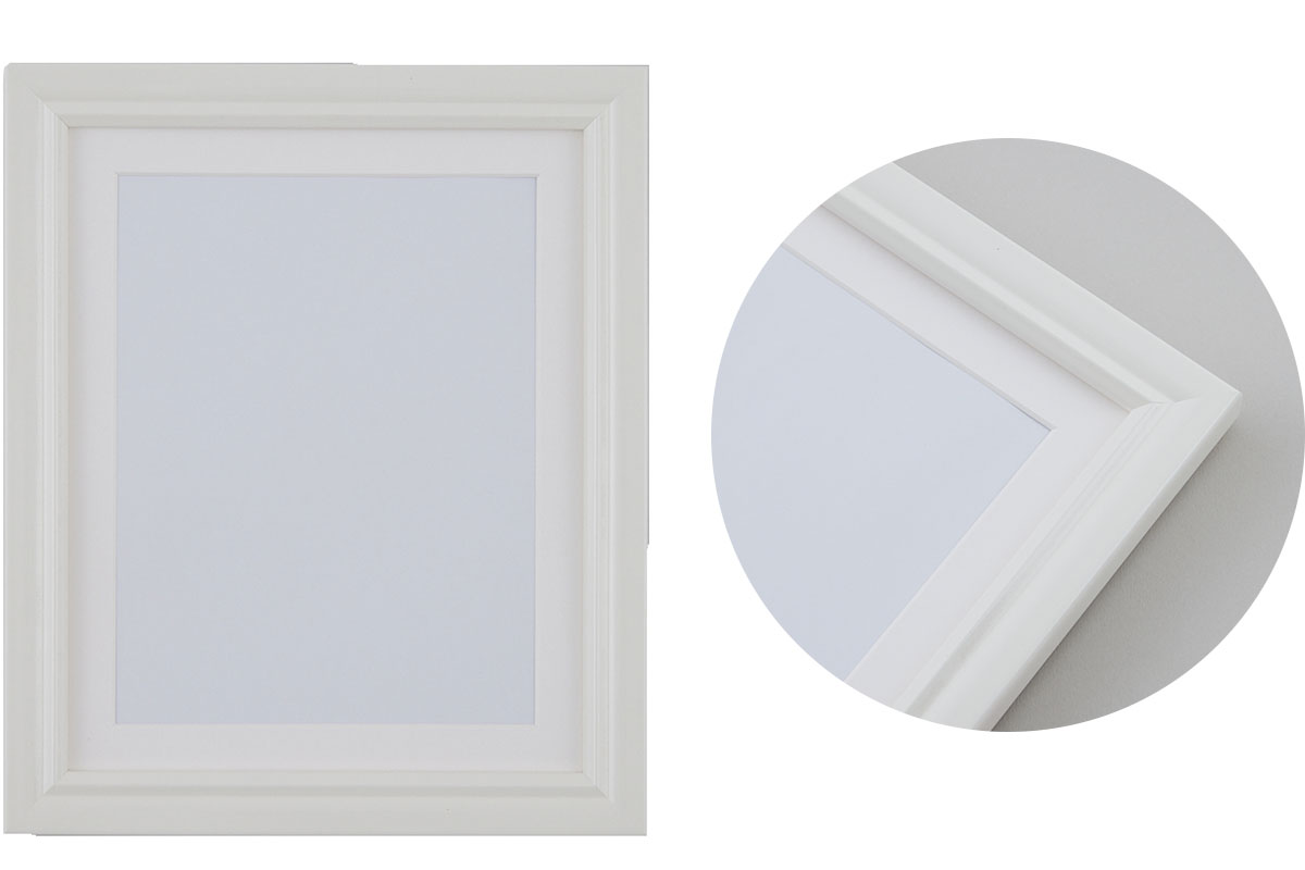 デザイン面:中マットあり 21.6×16.6cm・中マットなし 26.2×21.2cmシンプルな白い額で、さまざまな作品にも合わせやすいタイプです。●フレーム:色/ホワイト、素材/木製●中マット:ホワイト●ガラス・スタンドつき
