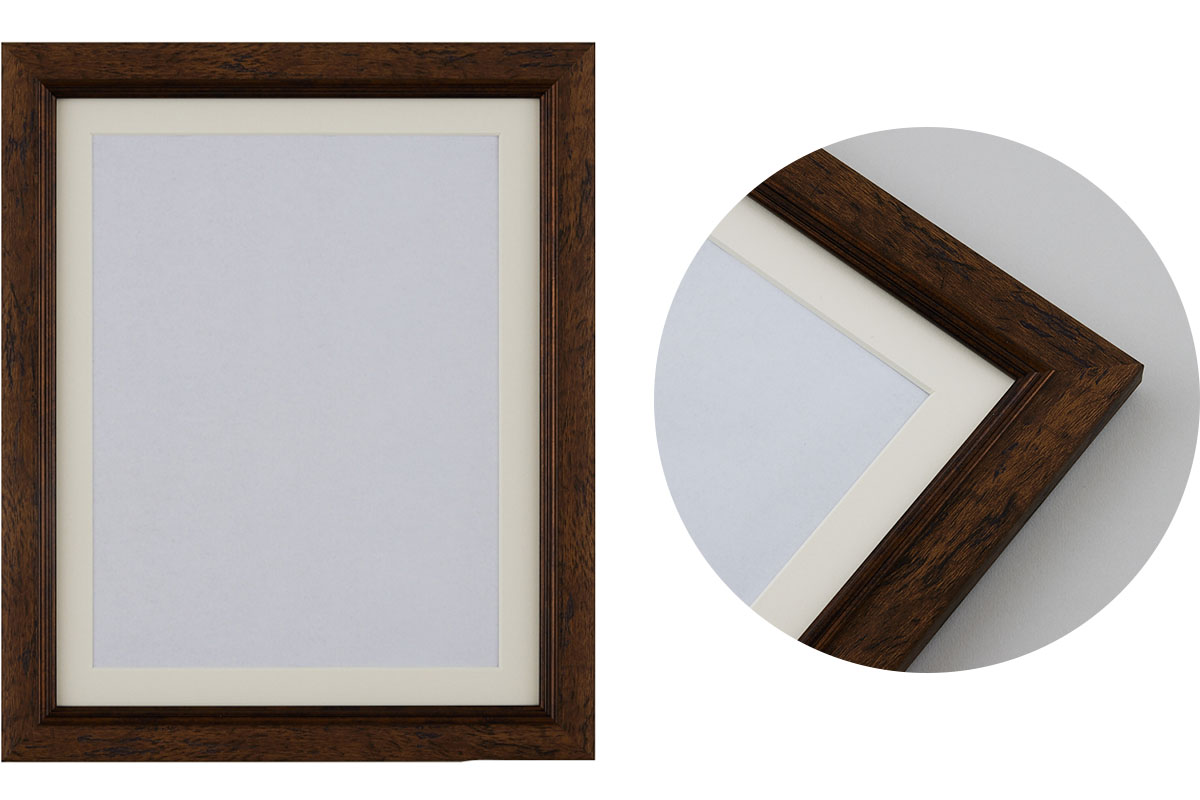 デザイン面:中マットあり 30×23cm・中マットなし 35.8×28.8cmココブラン額M のサイズ違い。より大きな作品に。●フレーム:色/ホワイト×ブラウン、素材/樹脂●中マット/クリーム●ガラスつき