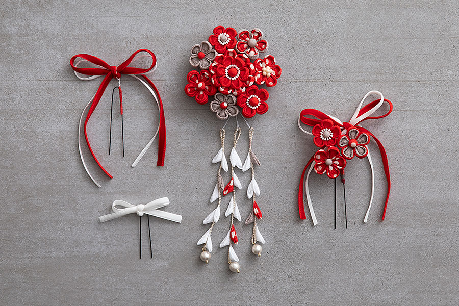 紅白の髪飾り 5点セット つゆつき