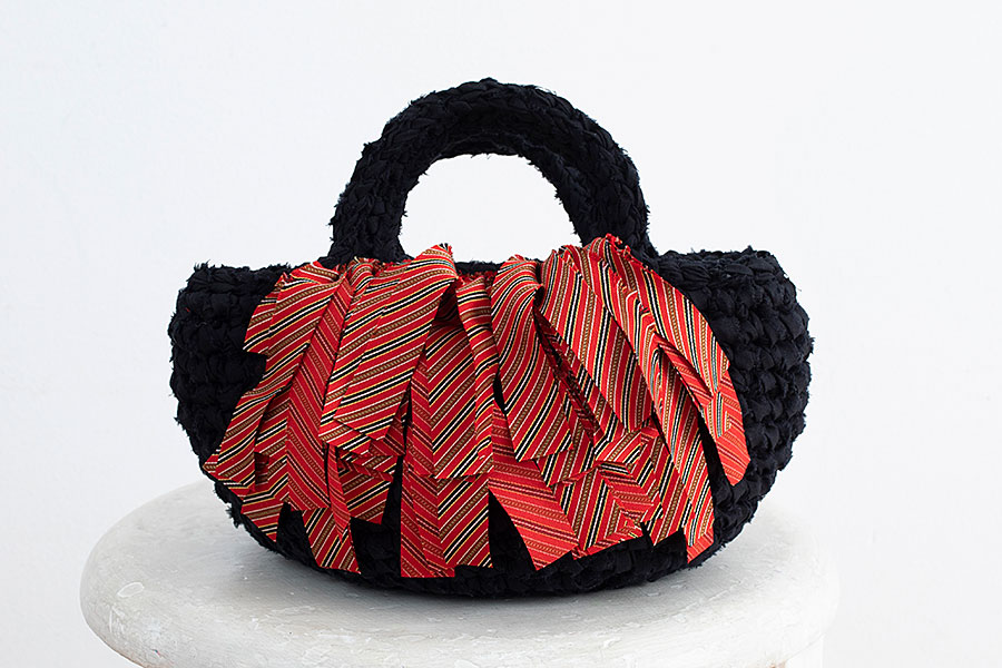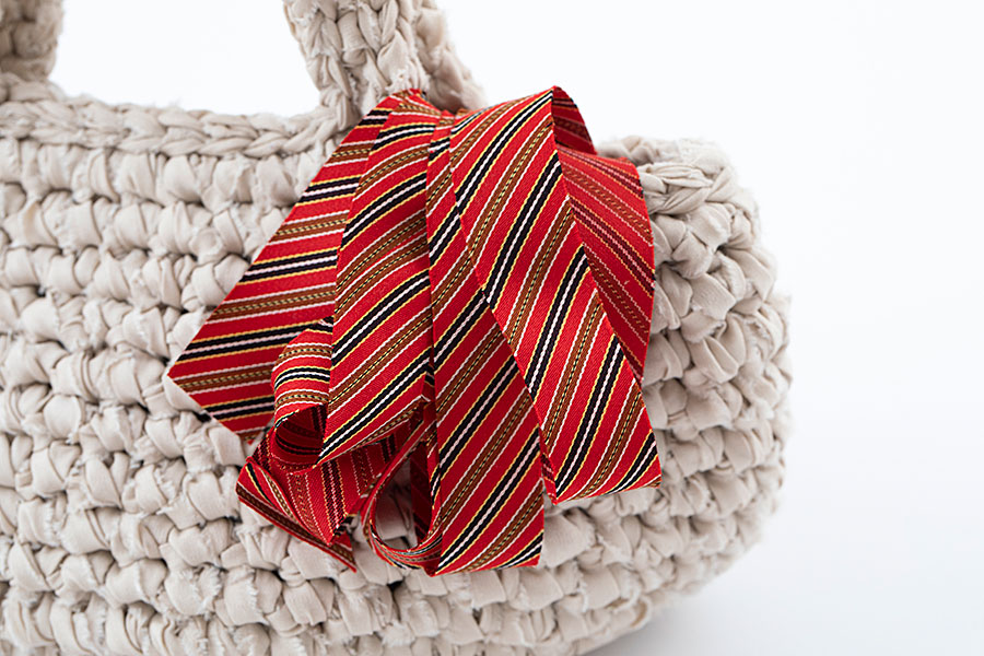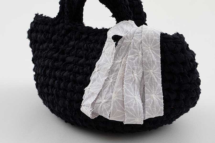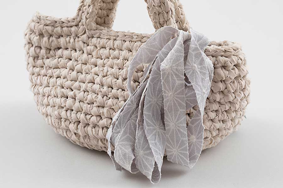 キモノヤーンで飾るミニバッグ