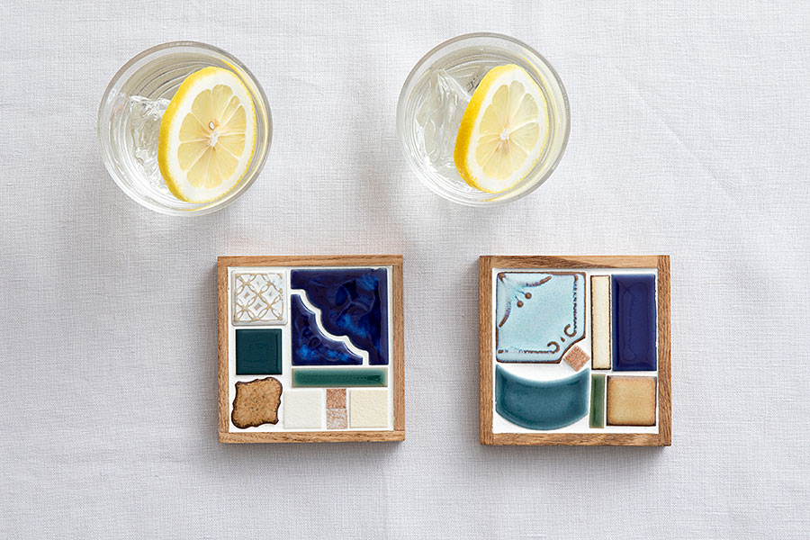 瑠璃色タイルのコースター2個セット シロフォン