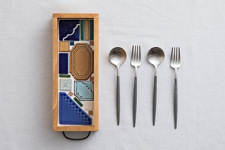 瑠璃色タイルのカトラリーケース シロフォン