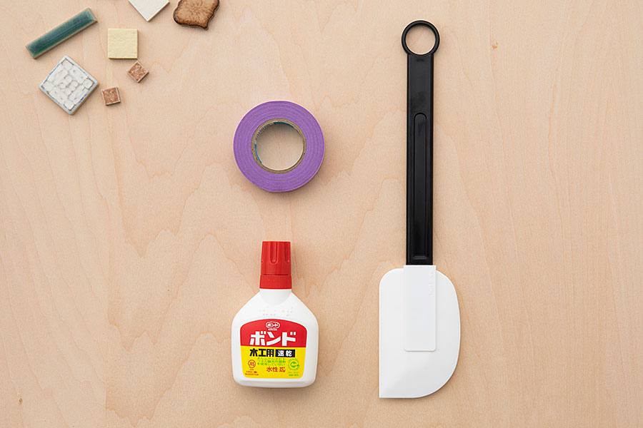 そのだなおこ 古いタイルと出会い、制作活動の扉が開きました。形、大きさ、年代、数量にとらわれず、さまざまなタイルを組み合わせ、作品を作っています。いまここにあるモノだけを組み合わせて作る、そんな軽やかさを提案しています。