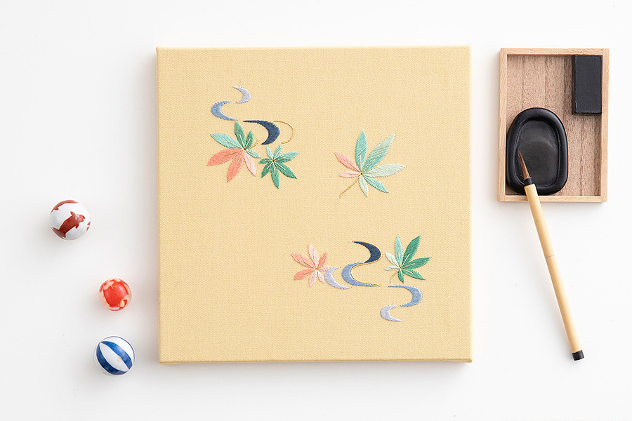 日本刺繍パネル[流水に紅葉] 沖 文