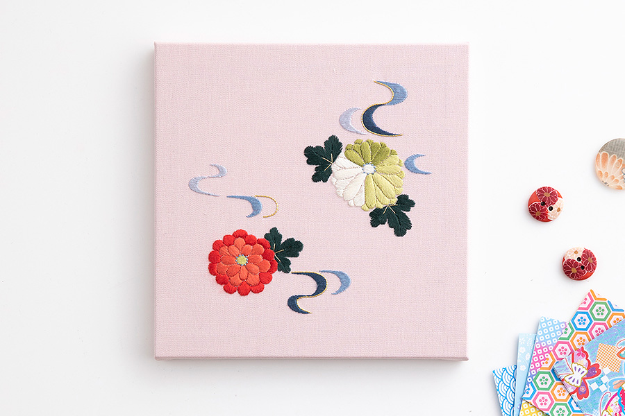 日本刺繍パネル[流水に菊] 沖 文