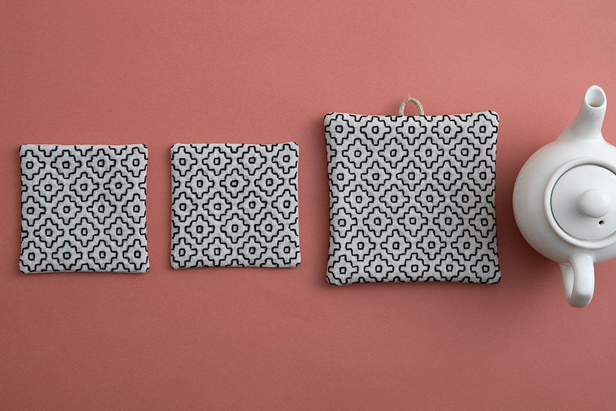 刺し子のコースターとポットマット sashikonami -