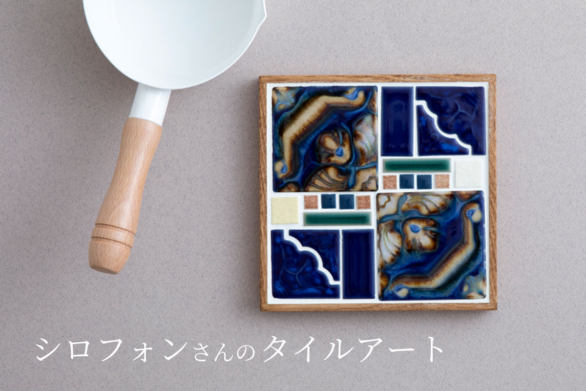 瑠璃色タイルの鍋敷き シロフォン
