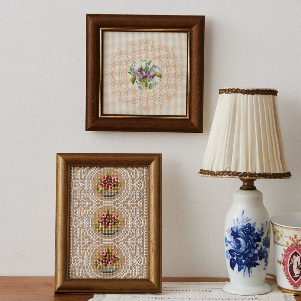 P.48掲載「レースドイリーにすみれとワスレナグサ」「ボーダーレースに秋バラとフラワーベース」
