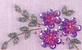 ビーズやスパングルを使った見た目も豪華な刺しゅうです。刺し方は一般的なヨーロッパ刺しゅうと同じです。