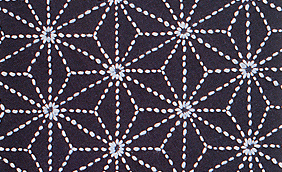 刺し子は重ね合わせた布に、補強と保湿のために刺し縫いしたものがはじまりのようです。ほつれた部分に布を重ねて刺し子をし、丈夫にすることで、当時は大変貴重品だった布を大切に使いました。定番は藍色の木綿地に木綿の色糸で刺します。伝統的な模様も数多く受け継がれていますが、最近ではカラフルな色合いのものや、デザインを楽しむこともあります。