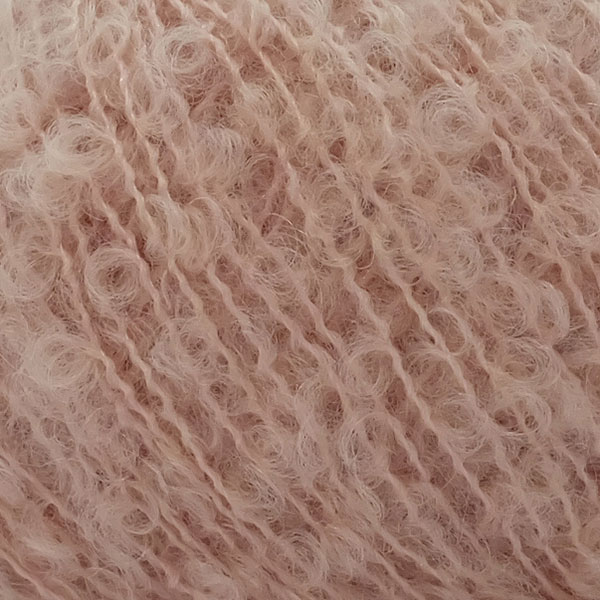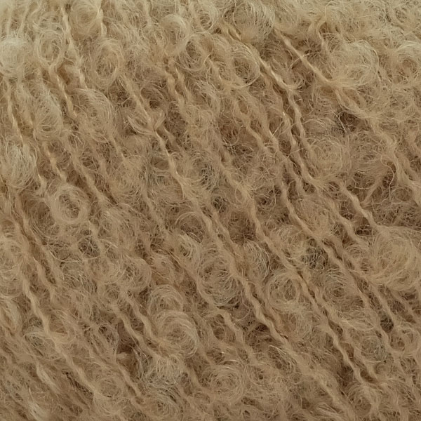 くるくるしたループが可愛いファンシーヤーンです。キッドモヘヤを使用することでループ形状が安定し、柔らかさがあります。ふんわり空気を含むので、軽くて暖か。1本でも編んでいただけますが、引き揃えもおすすめです。