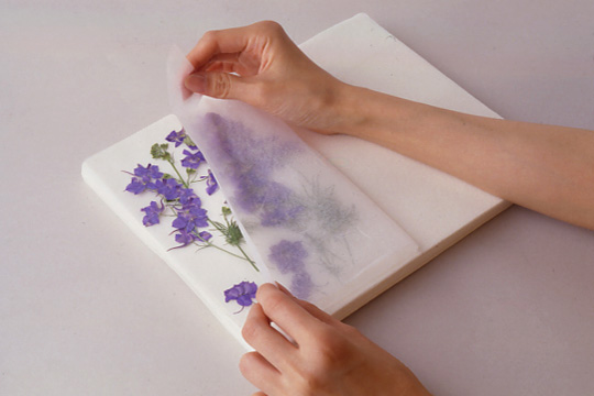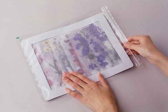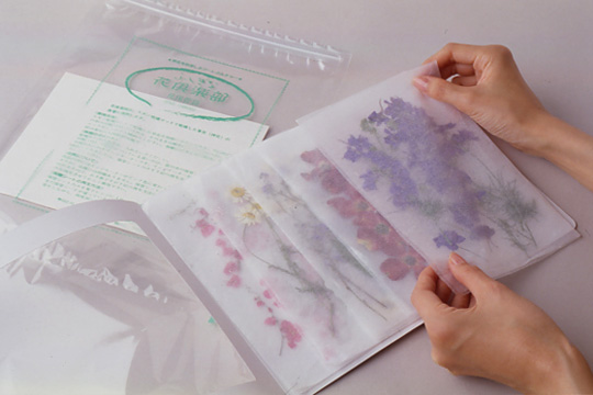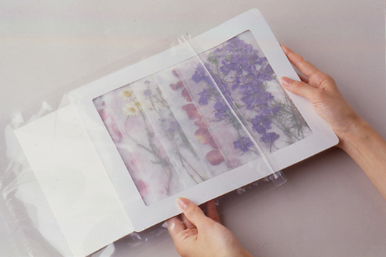 日本ヴォーグ社が提案する独自の専用マットにより変色しにくい押し花処理の方法は、花や葉の色・形をそのままの美しさで押し花にすることが出来ます。