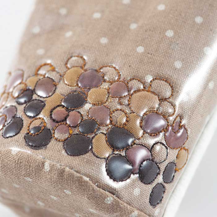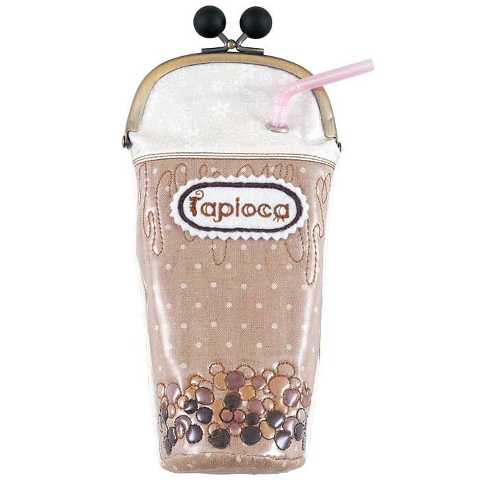 口金の玉がタピオカにしか見えなくなり、タピオカミルクティーを思いつきました。自立するのでペン立てにしようと少し長めに作りました。ストローはちょっとした遊び心です。