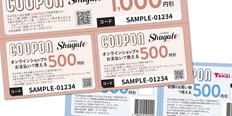 全国のトーカイグループで使えるお買い得なクーポン、通販の案内もございます。