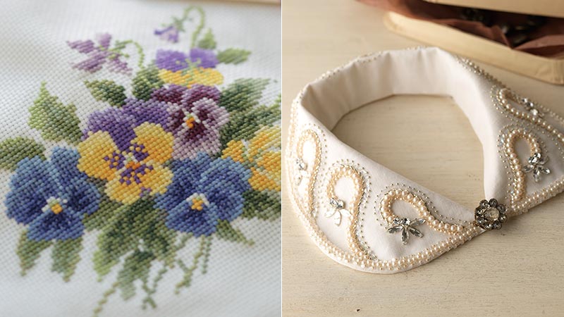 オノエ・メグミさんにクロスステッチのデザイン発想法を、笹尾多恵さんにはアンティークビーズ刺しゅうから学ぶことを教えていただきます。