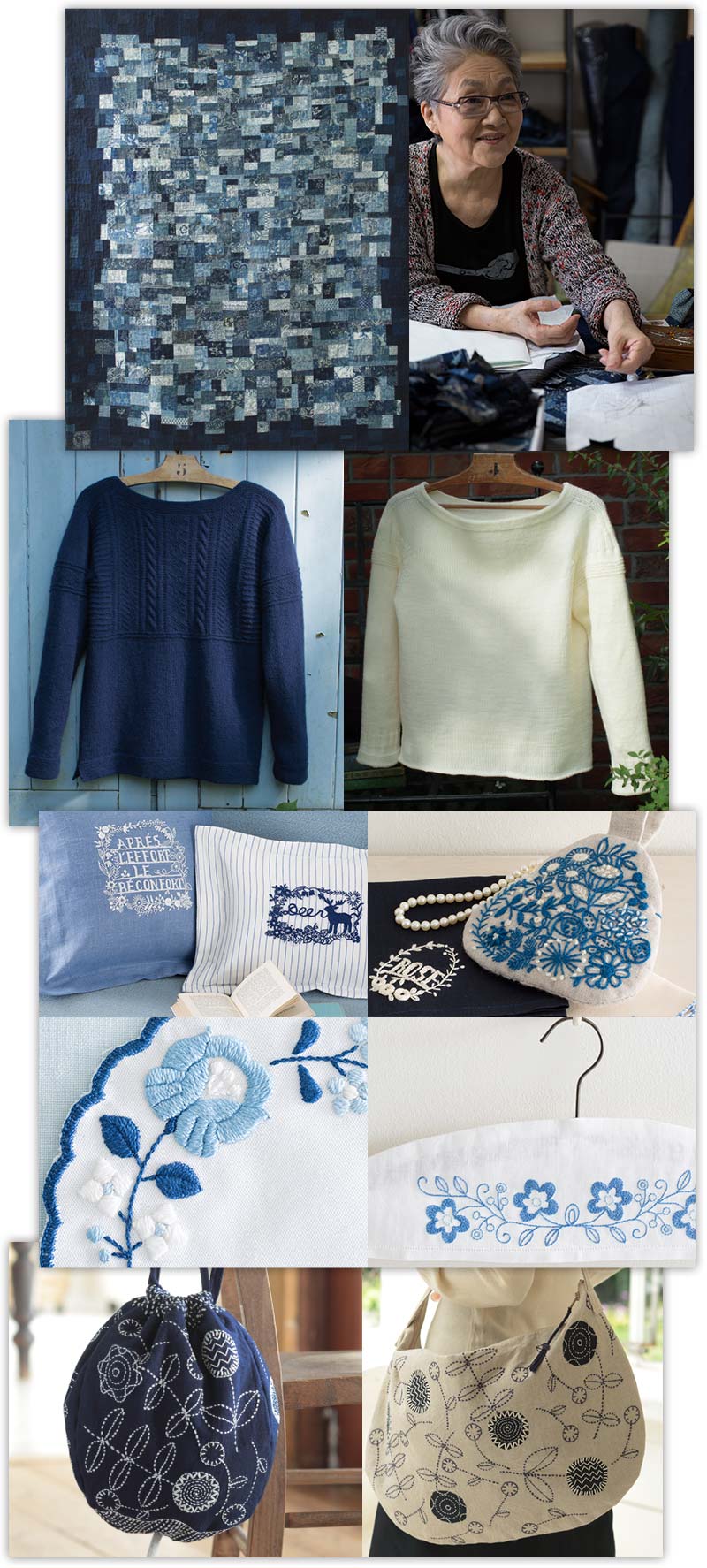 ジャパンブルーといわれる「藍」を中心に、青と白を切り口にしたさまざまな手づくりの世界を提案します。