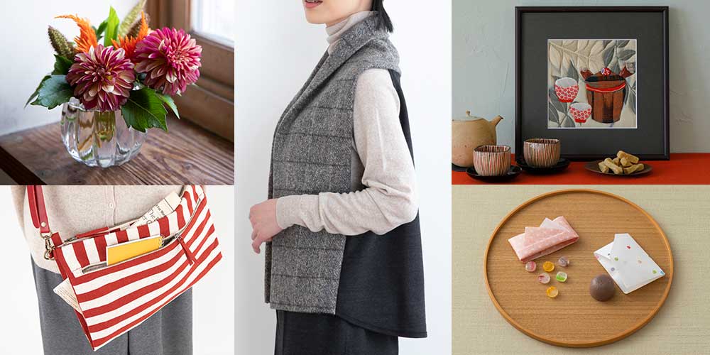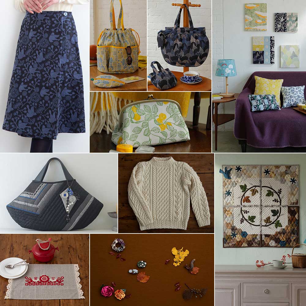 北海道を拠点とするテキスタイルブランド「点と線模様製作所」のデザイナー、岡 理恵子さんが手がける布に注目。北の大地のモチーフがさまざまに表現されたテキスタイルは、多くの手芸作家たちを魅了しています。今回、赤峰清香さん、May Me伊藤みちよさん、roll高見直子さん、米田亜里さんとのコラボレーションで、素敵なインテリア小物から洋服、バッグ、ポーチなどがそろいました。