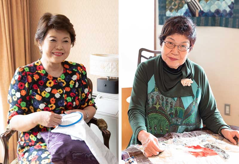 • 左/イタリア刺しゅう講師いがらし郁子さん