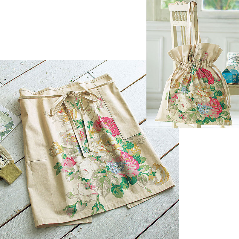 〈Vol.16 キルト&ソーイング作家・こうの早苗さん監修〉サロンエプロンまたは巾着型トートバッグが作れるオリジナルバラ柄プリント