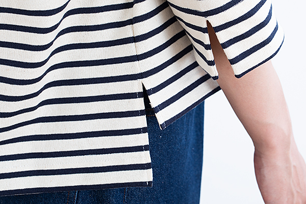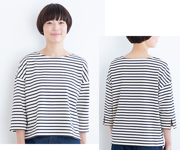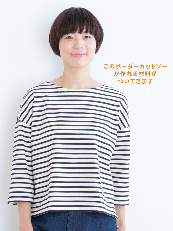 - ボーダー天竺布(生成り×ネイビー:155cm幅×140cm)