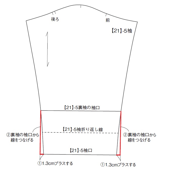 下図のように線を引き直してください(全サイズ共通)。