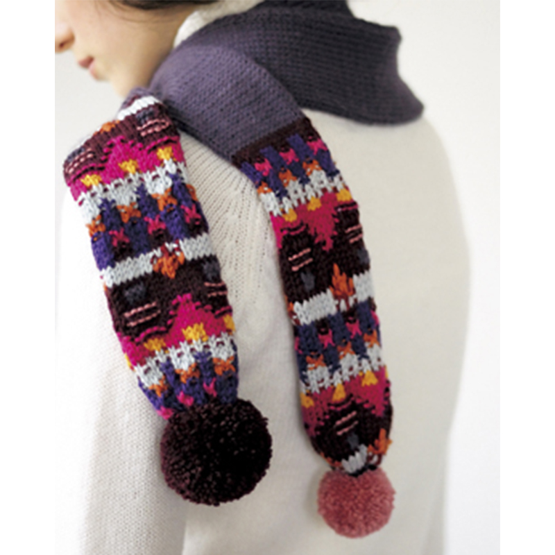 材料:パピー プリンセスアニー 灰味紫(523)80g=2玉、暗い赤紫(510)30g=1玉、青紫(538)10g=1玉、明るい灰緑(534)10g=1玉、濃いピンク(540)5g=1玉、濃い赤(532)少々=1玉、からし色(541)少々=1玉、オレンジ色(542)少々=1玉、ピンク(544)少々=1玉、灰味ピンク(527)10g=1玉